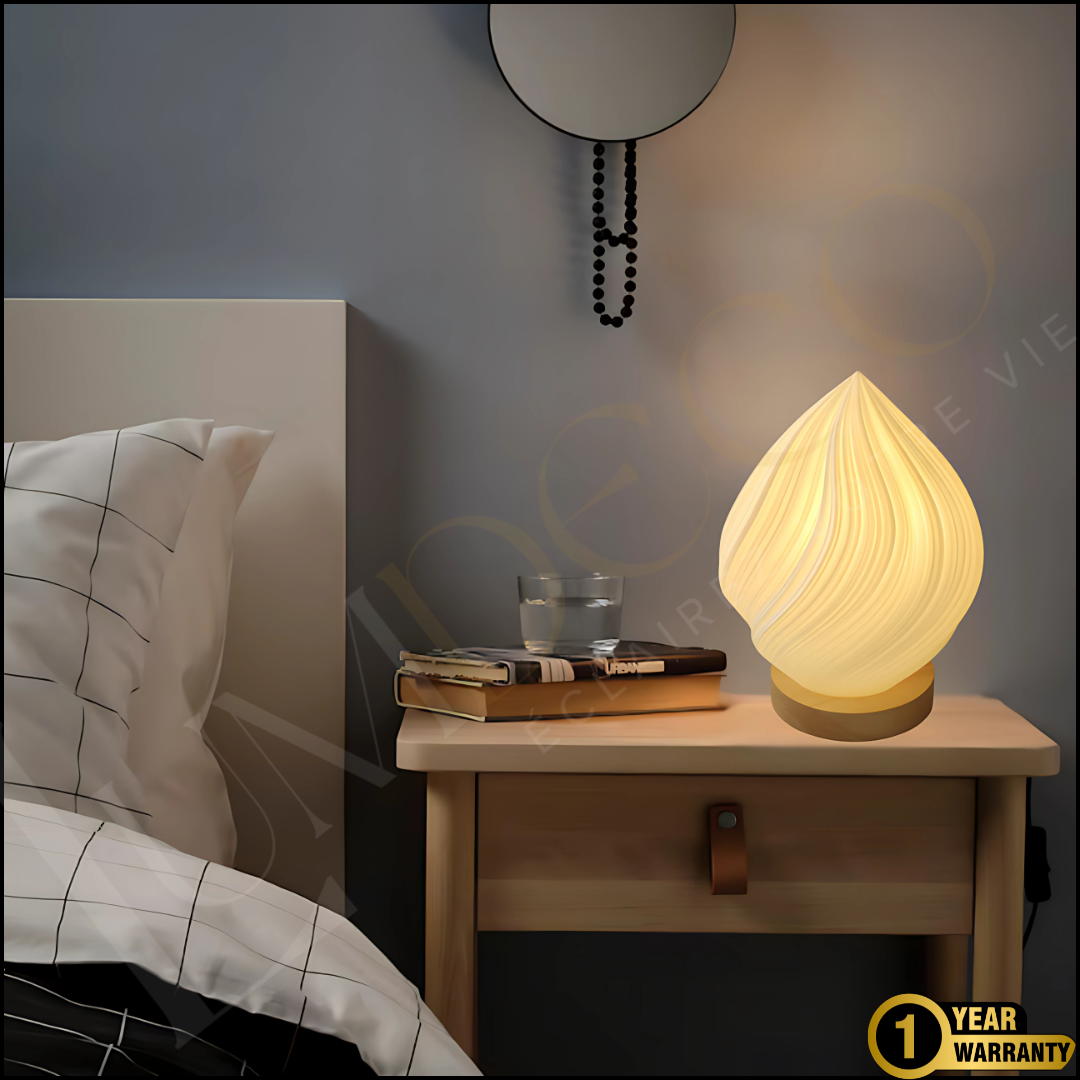 LUMIYA se distingue par son abat-jour fluide aux courbes végétales, évoquant une feuille délicatement repliée. Le socle en bois naturel ajoute une chaleur authentique, parfaite pour une déco zen, nordique ou bohème.