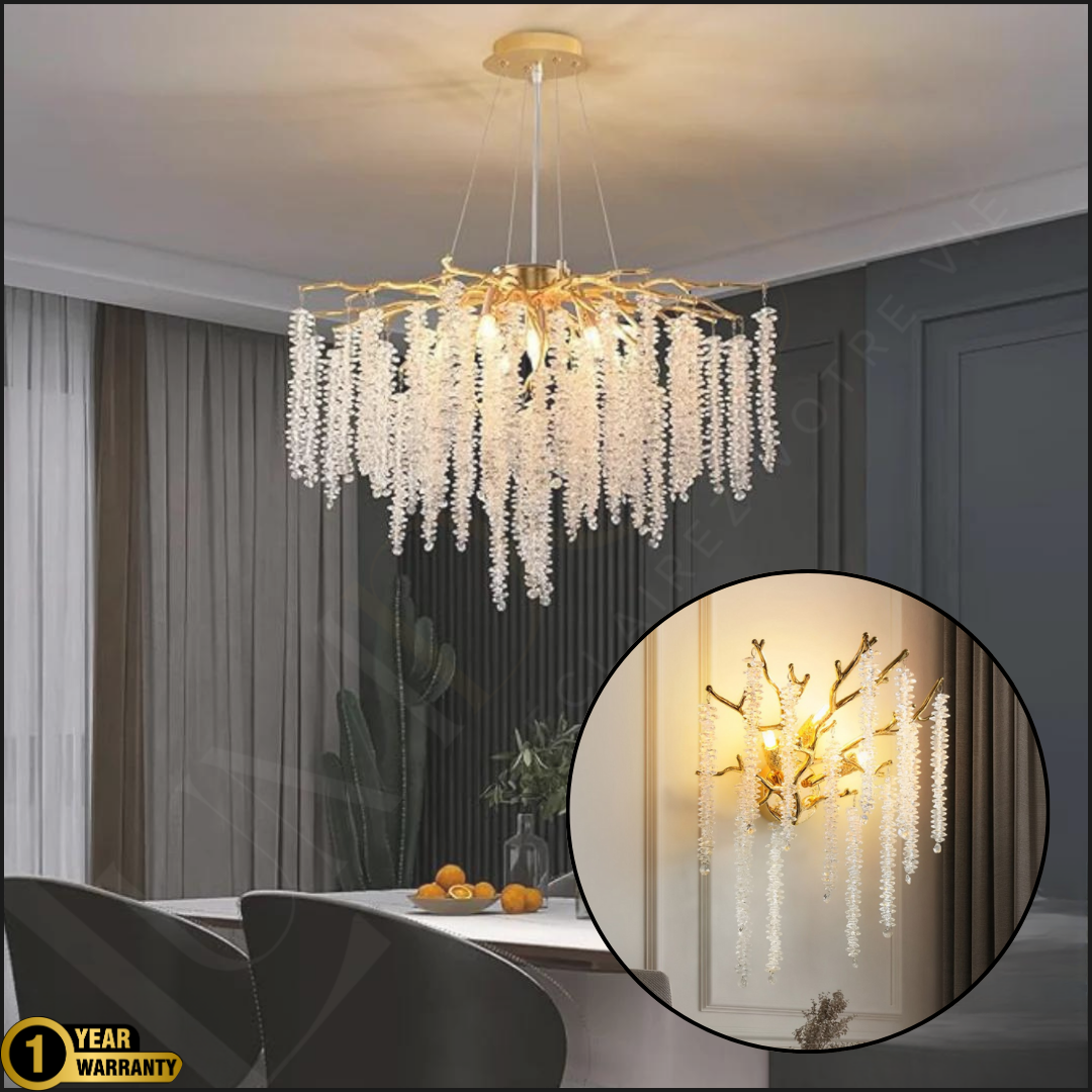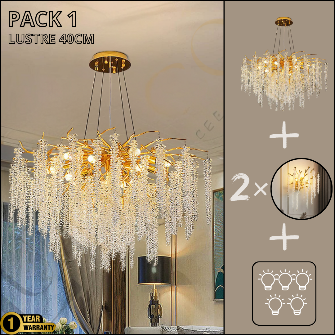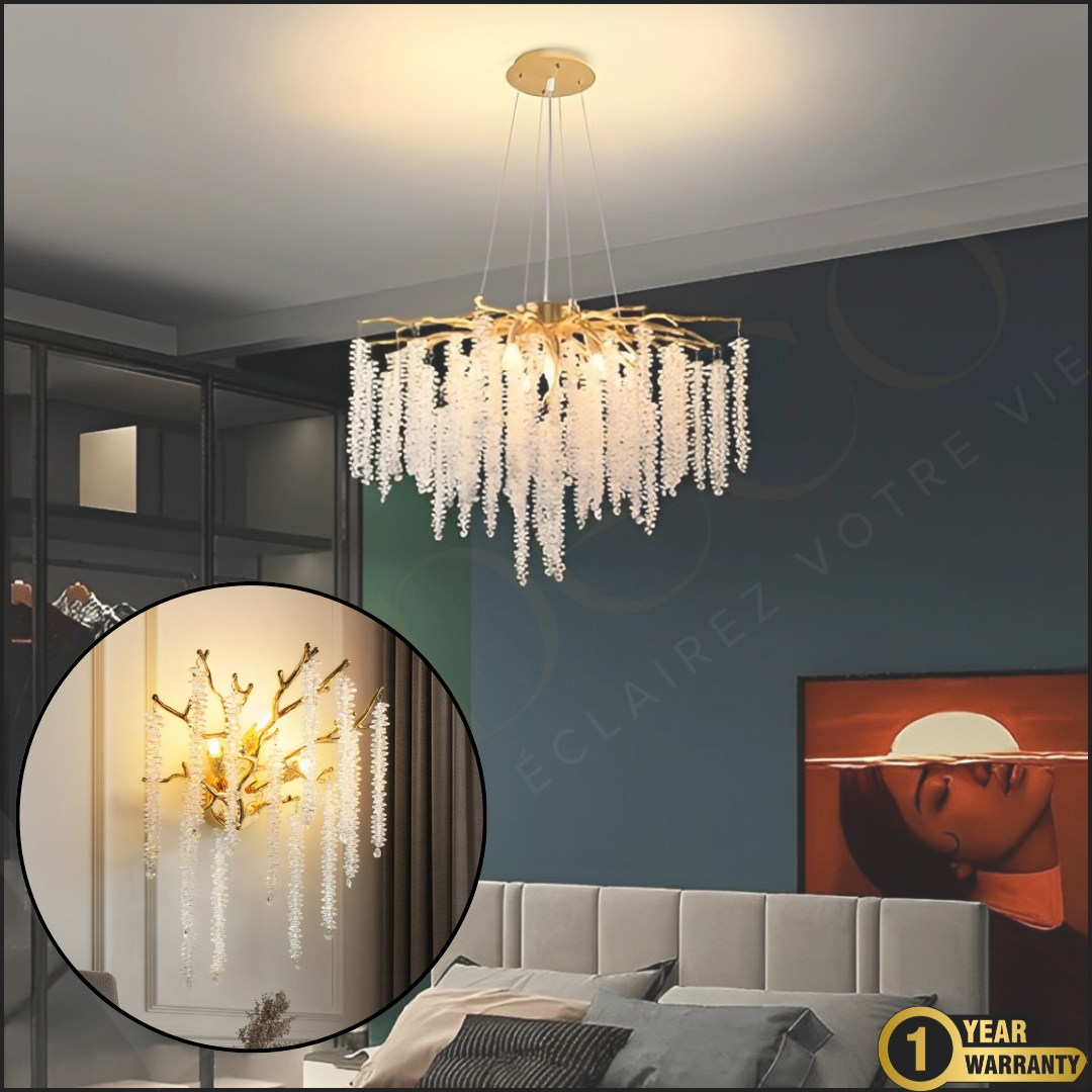 Offrez à votre intérieur un éclairage prestigieux avec ce pack exclusif ATELINA ROND + 2 Appliques assorties. Conçu pour créer une atmosphère chaleureuse et raffinée, ce pack combine le charme d’un lustre luxueux et la finesse des appliques murales.