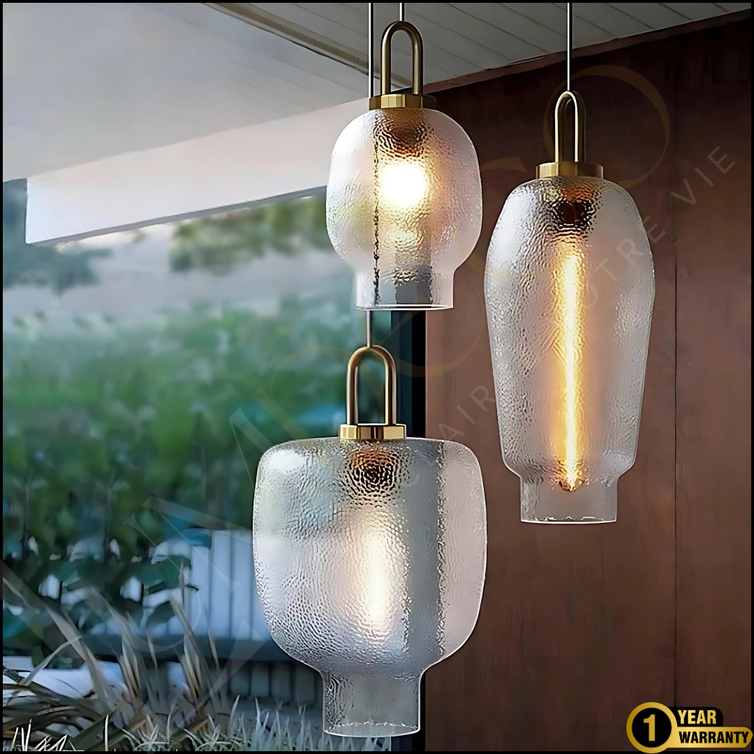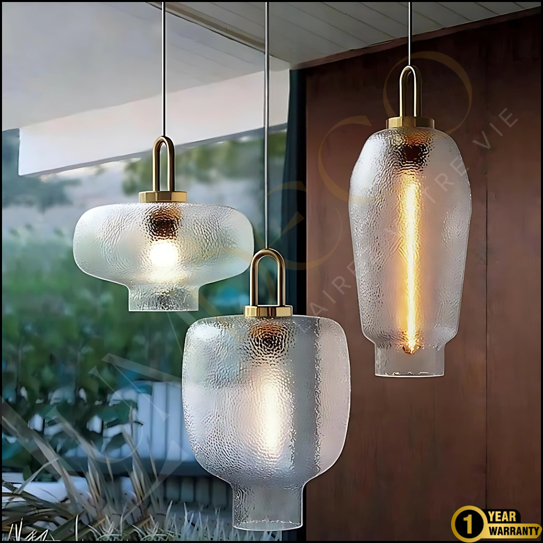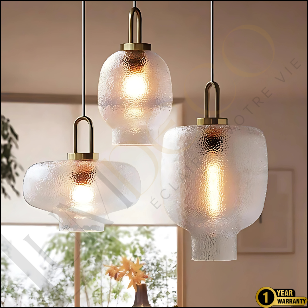 Créez une ambiance raffinée et chaleureuse avec le pack LUMIDORA, une série de trois suspensions en verre martelé aux formes artistiques et aux finitions haut de gamme. Chaque pièce incarne l’équilibre parfait entre modernité et authenticité.