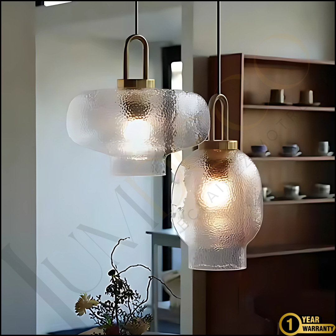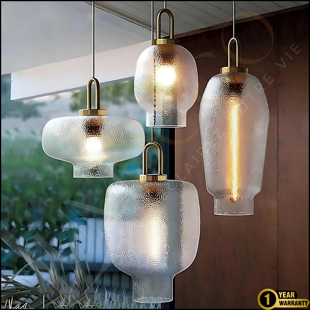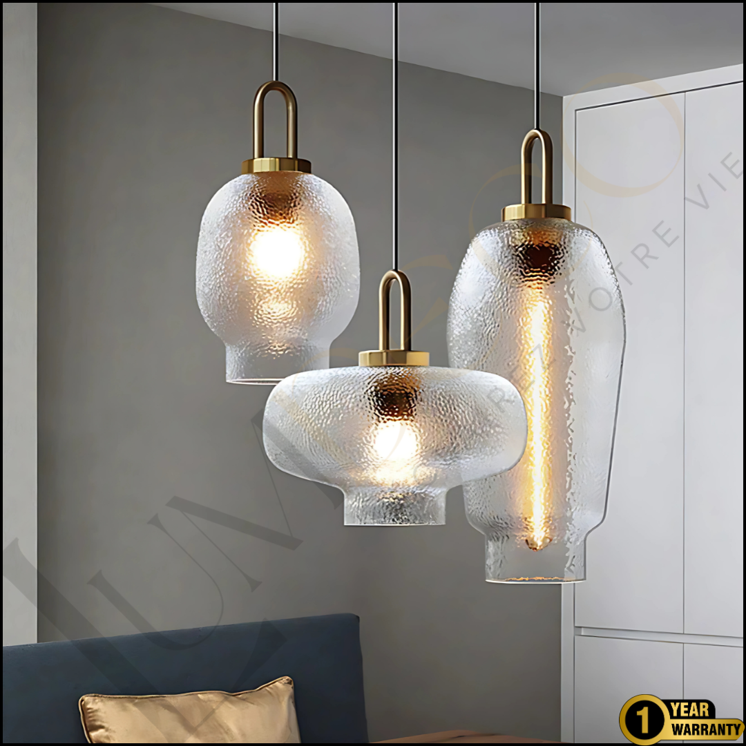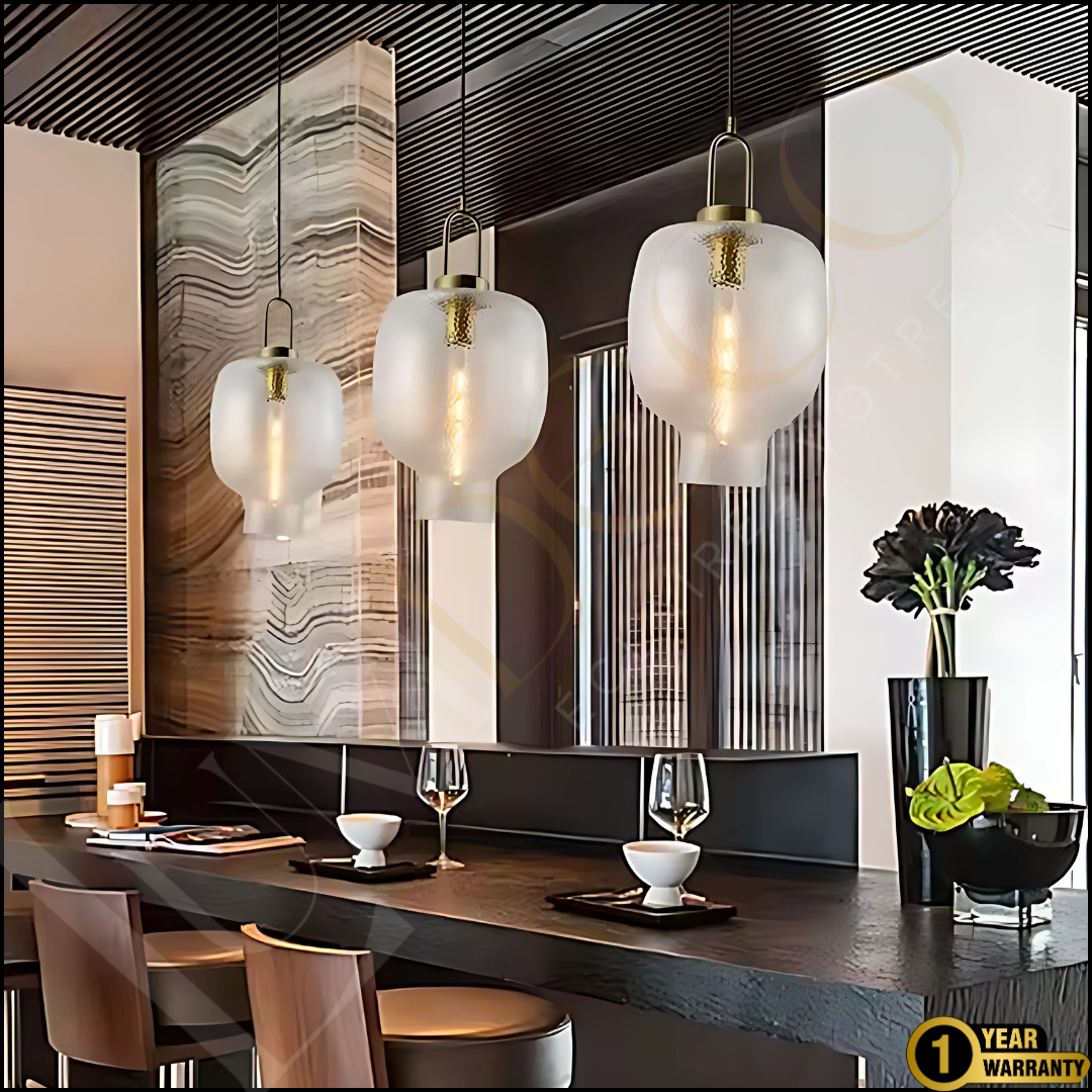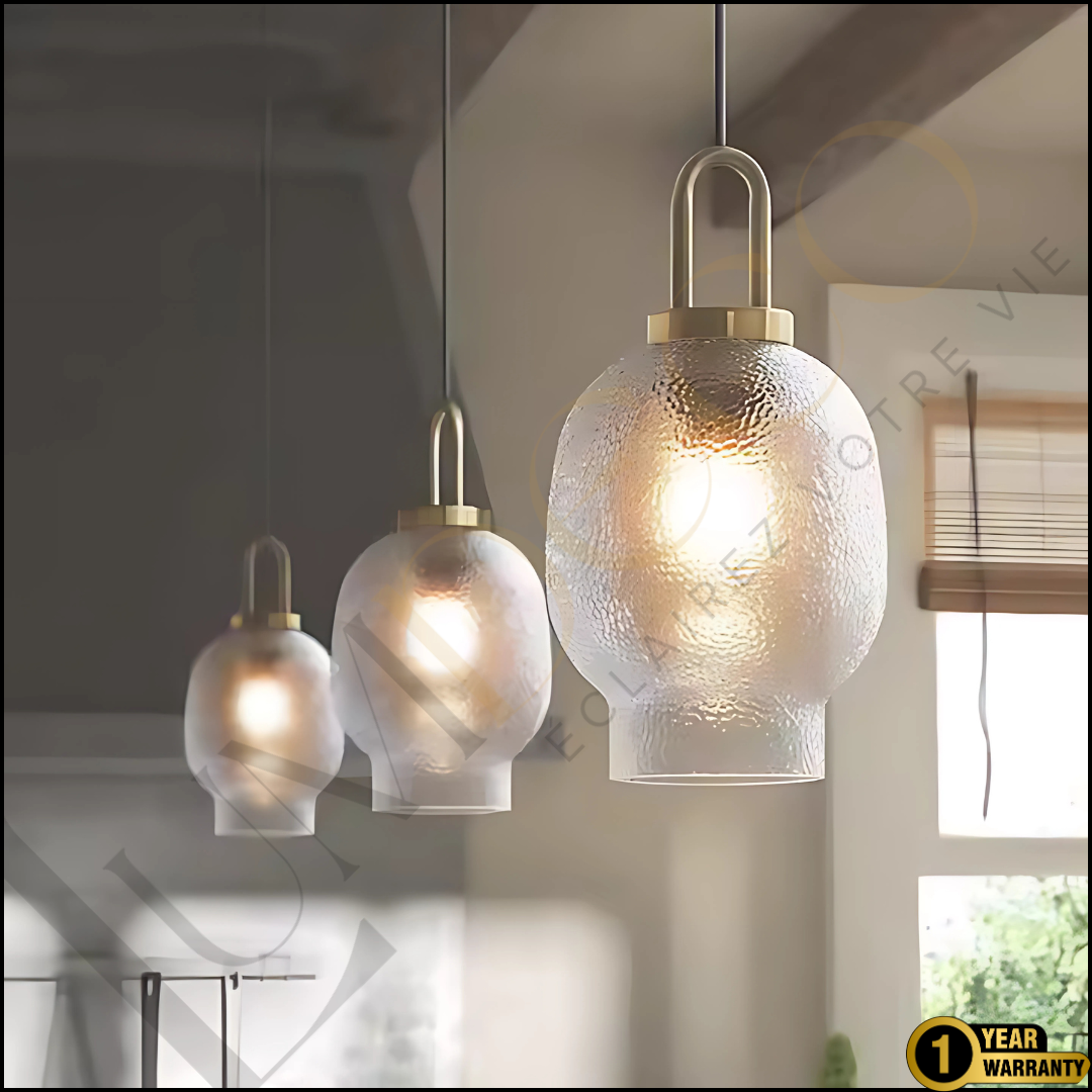 Chaque modèle se distingue par sa forme géométrique originale et sa finition métallique élégante. Le diffuseur en acrylique garantit une lumière douce, sans éblouissement, parfaite pour sublimer une table à manger, un coin salon ou une chambre.