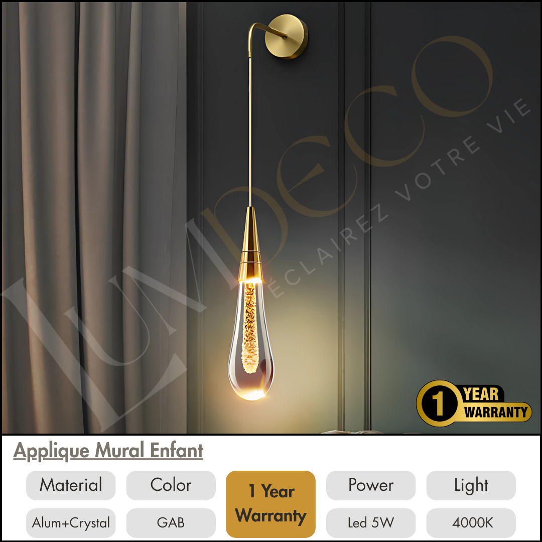 💧 Applique Goutte d’Eau – Élégance Cristalline & Lumière Douce 4000K