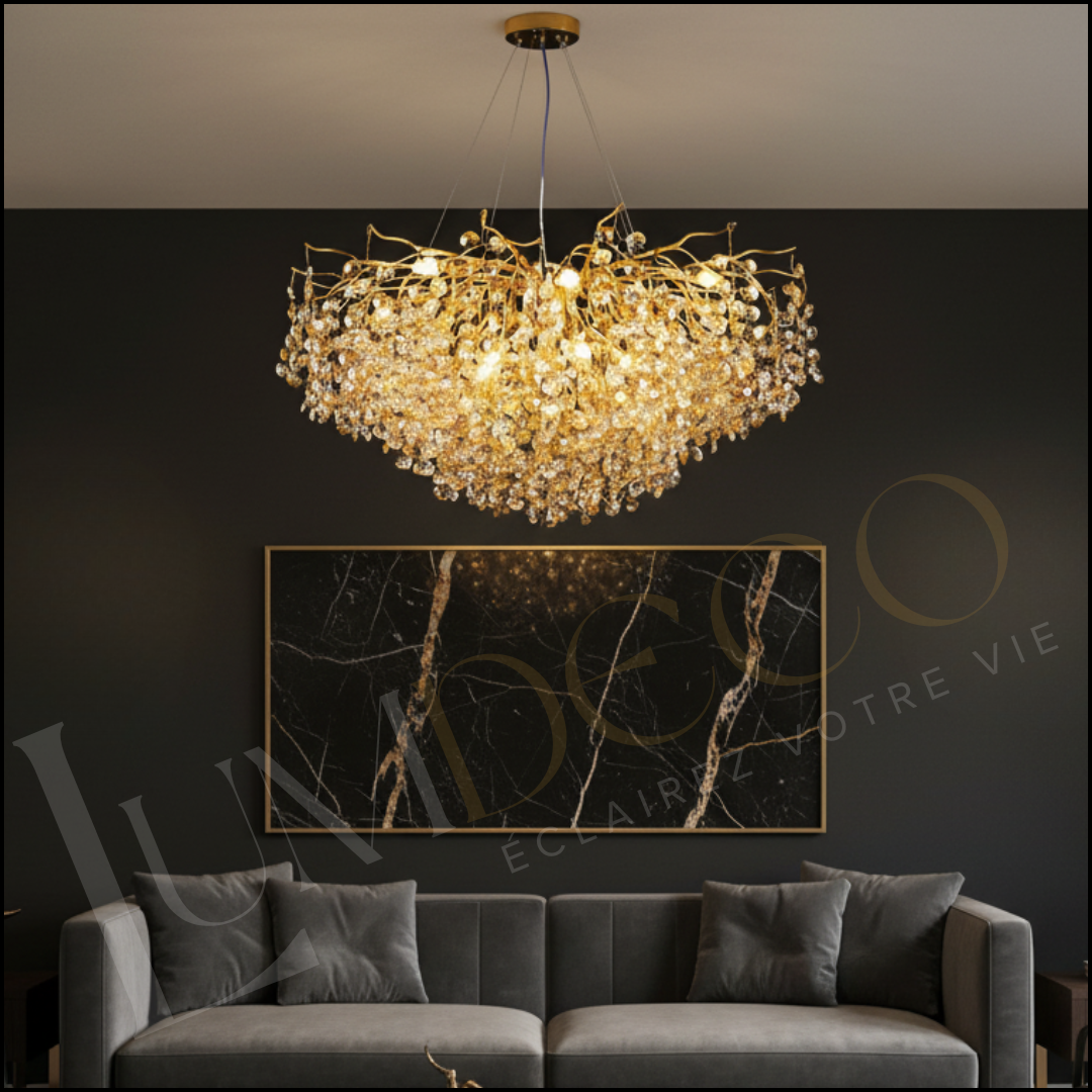 ✨ Lustre Luxueuse ASSALA CRYSTAL – Éclat Sculptural et Raffinement Doré